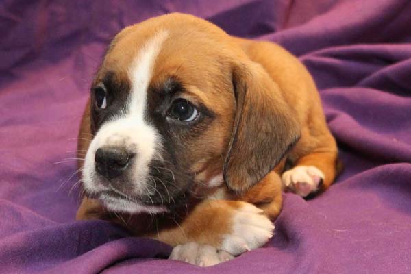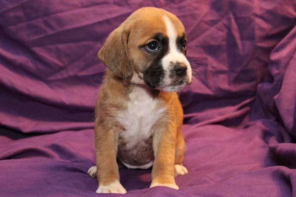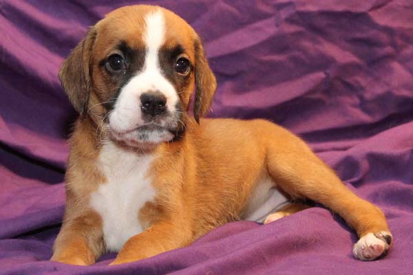 For only the 2nd time in 25 years, we had an accidental breeding. One of our female Beagles got through 3 fences to be with our Boxer stud, Chico. And they made a litter of Boxer/Beagle mix puppies… known on the internet as Boggles.